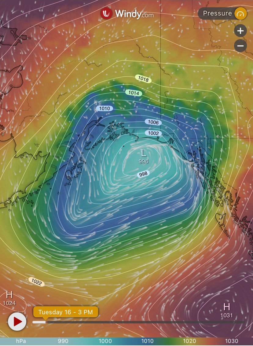 On 14 March 1979, an intense storm associated with a deepening low-pressure system over the Gulf of Alaska made landfall just northwest of Yakutat, Alaska. A fishing boat was caught in this storm because forecasted wind speeds were 30 knots (15.5 m/s), but actual winds of 70 knots (36 m/s) were reported. During the cool season in the eastern Gulf of Alaska, extratropical cyclones over the Pacific Ocean frequently make landfall where steep coastal terrain and cold Arctic air from the Yukon interact to produce strong winds called coastal barrier jets that can reach hurricane force and are difficult to forecast. Alaskan barrier jets typically occur when there is an upper-level trough (low pressure) over the Aleutian Islands and a ridge (high pressure) over western Canada, which favors low-level southerly airflow toward the Alaskan coastal terrain. The proximity of steep mountains to the coast favors the development of coastal barrier jets which generally form in the presence of terrain heights exceeding 1.2 miles (2 km) within 62 miles (100 km) of the coast such as the coastline bordering the eastern Gulf of Alaska. Some of the coastal mountains most important to local weather are in the Fairweather Range, which is over 2.8 miles (4500 m) in elevation and within 40 miles (64 km) of the coast. The coastal barrier jets of southeastern Alaska are also influenced by the strong air outflows through the numerous near sea level mountain gaps in this region such as Cross Sound and the mountain gap created by the Tatshenshini-Alsek watershed. Gap flows occur when there is a significant pressure difference between opposing sides of a mountain range, where air from the high-pressure side over the interior is frequently drawn through the mountain gaps toward the low-pressure side over the ocean. Upon exiting the gap, this unbalanced flow can be turned northward by the Coriolis effect further exacerbating the already intense coastal winds and creating conditions that are treacherous to the aviation, commercial fishing, and marine transportation industries.